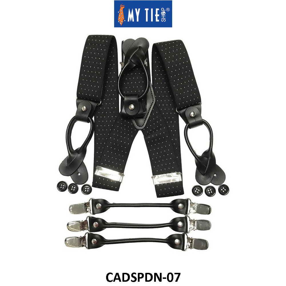 MY TIE SHOP Carries 2 In 1 Men’s Brace Leather End Suspenders. The Bottom End With 6 Strong Clips Y Back By Most Comfortable Adjustable Elastic Strap And Come With Both Metal Clips And Buttons On Leather End. The Wearer Simply Chooses The Style Or May Switche It Within. That Be Versatile Choice At Good Price.
